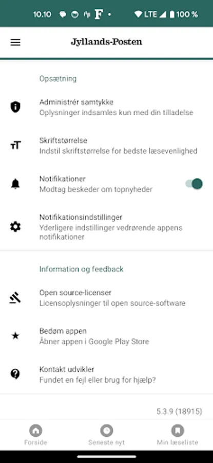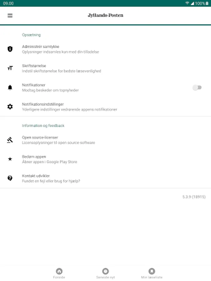 The Jyllands-Posten app on your Android, you can keep up to date in a variety of news categories.