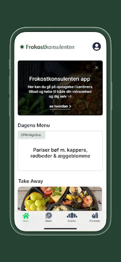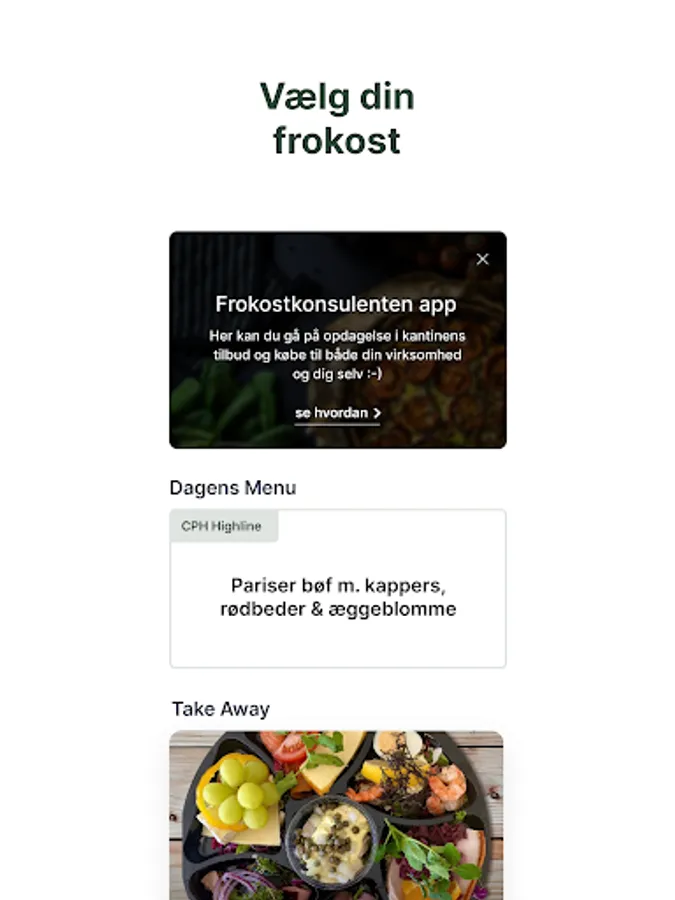 Download the app and explore your company's lunch arrangement! We have made it easy for you to choose what you, as an employee, should have and eat for lunch, so that the kitchen can focus on preparing your lunch.