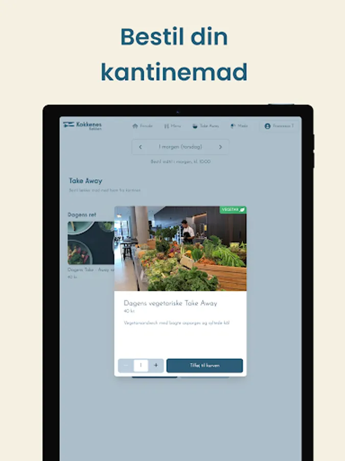 Download the app and explore your company's lunch arrangement! We have made it easy for you to choose what you, as an employee, should have and eat for lunch, so that the kitchen can focus on preparing your lunch.