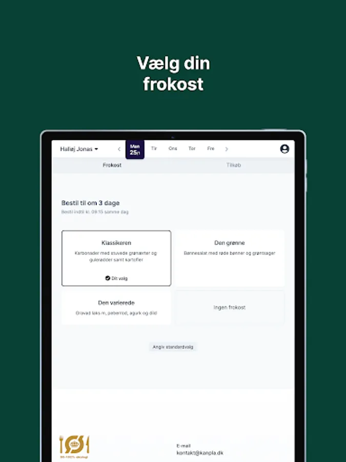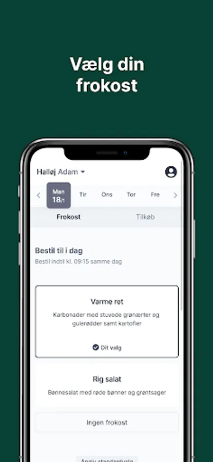 Download the app and explore your company's lunch arrangement! We have made it easy for you to choose what you, as an employee, should have and eat for lunch, so that the kitchen can focus on preparing your lunch.