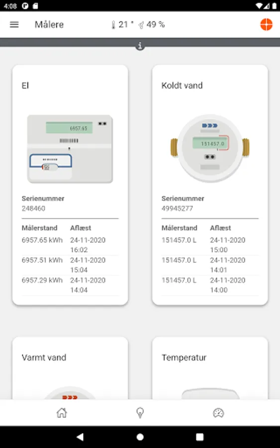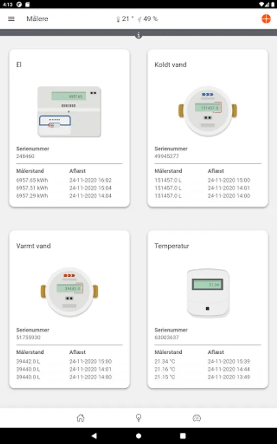EnergyHome is user-friendly and intuitive and can be used by anyone right away. The app shows your personal consumption of electricity, cold water, hot water and heat shown graphically in column form on a daily, weekly, monthly and annual basis with comparisons to your own previous consumption and to other residents' consumption.