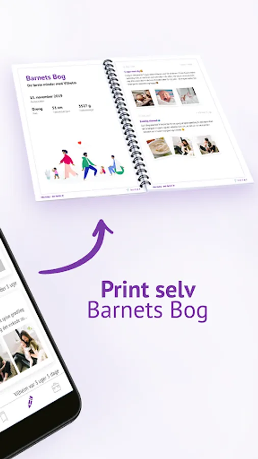 THE BOOK OF THE CHILD The child's book allows you to store pictures and memories from your child's first year. You can easily mark the most important milestones and save or print the book in a beautiful design.