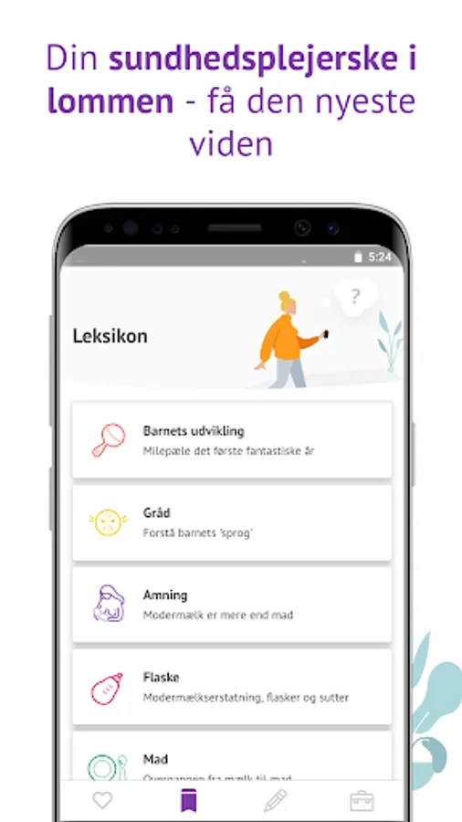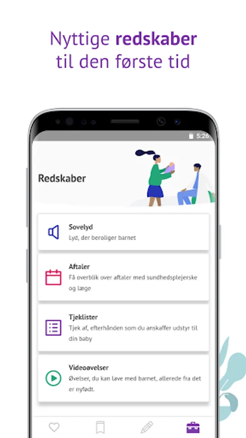 YOUR HEALTH NURSERY IN POCKET With My Baby - the first year you always have your health care nurse at your fingertips. In the app's "Worth to Know" app, you can read about all the important things that happen in the child's first year. The app is approved by health nurses and midwives and follows the instructions in the Health Board's books, including Healthy Kids and Food for Small.