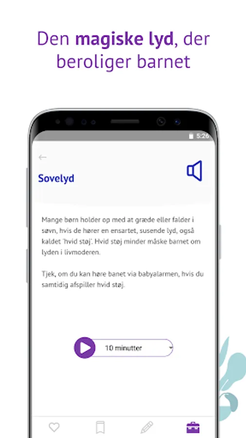Sleep: Support the child's sleep and get help with sleep problems. Helpful tool: Sleepy sound that you can play for your child when it's uneasy.