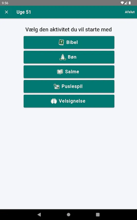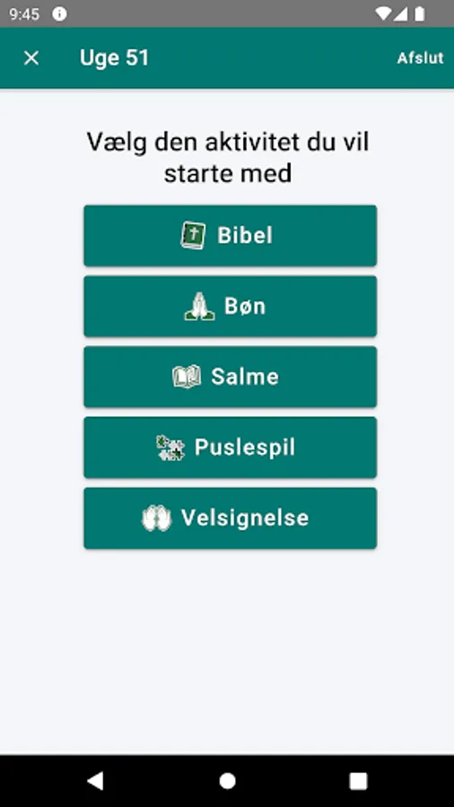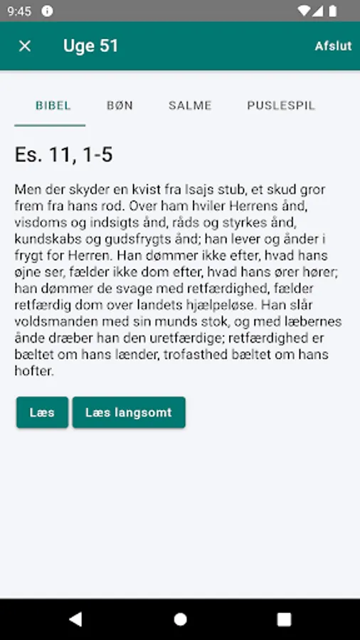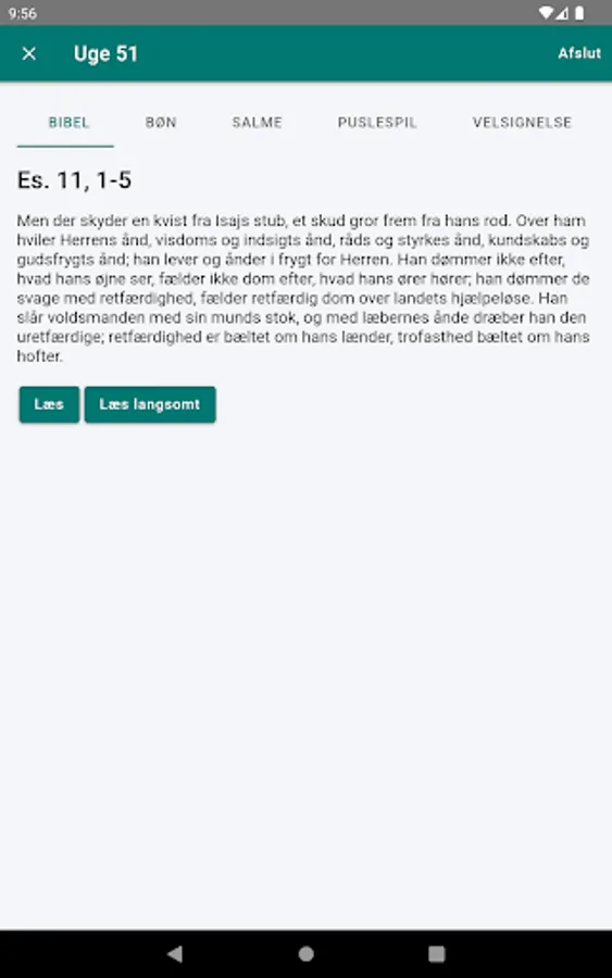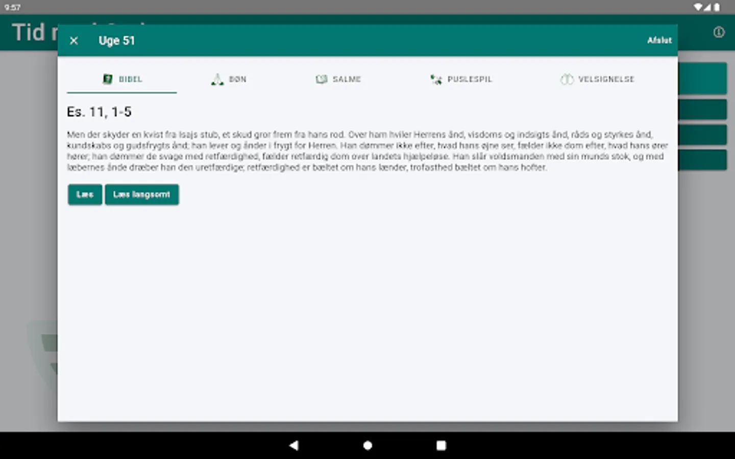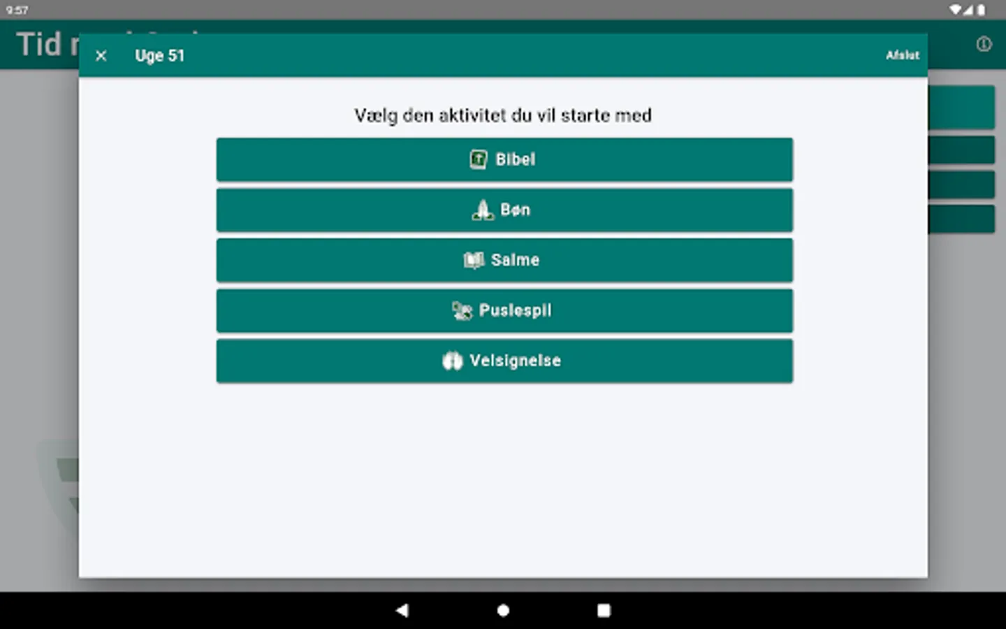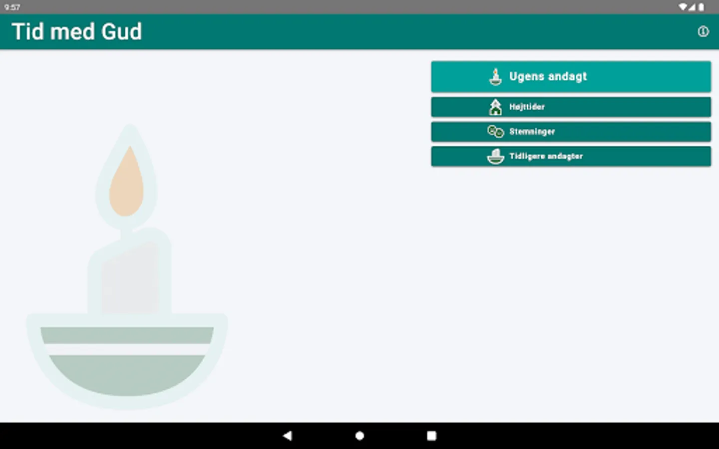 TidMedGud is the app that allows you to hold your own personal devotional, even if you have difficulty reading and finding your way around the Bible and hymnal. You don't need anyone to help you, because the app gives you help to read/listen and compose the devotional as you wish.