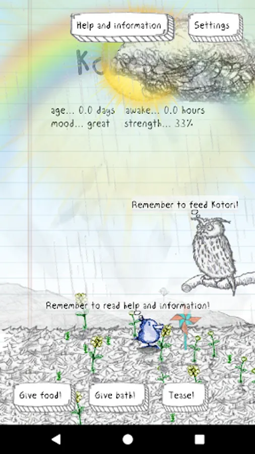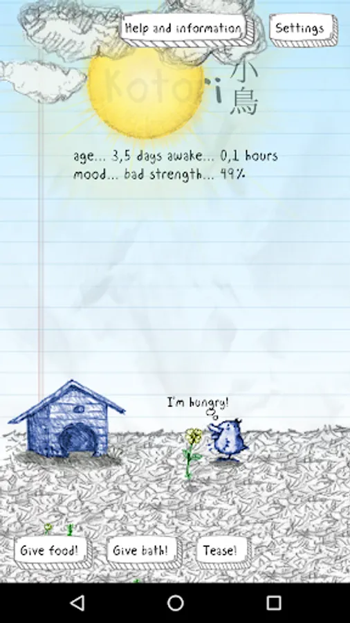 Who and what is Kotori? Kotori is Japanese for "little bird". Kotori is a creature living on your wallpaper; also when your phone is sleeping. Kotori will sleep, eat, talk and age; it is your job to keep Kotori well-fed and healthy. The scenery itself will also change depending on the time of the day. Kotori will also help you; Kotori will let you know if you have a new text message, email, missed call or notice if your device is low on battery and much more.