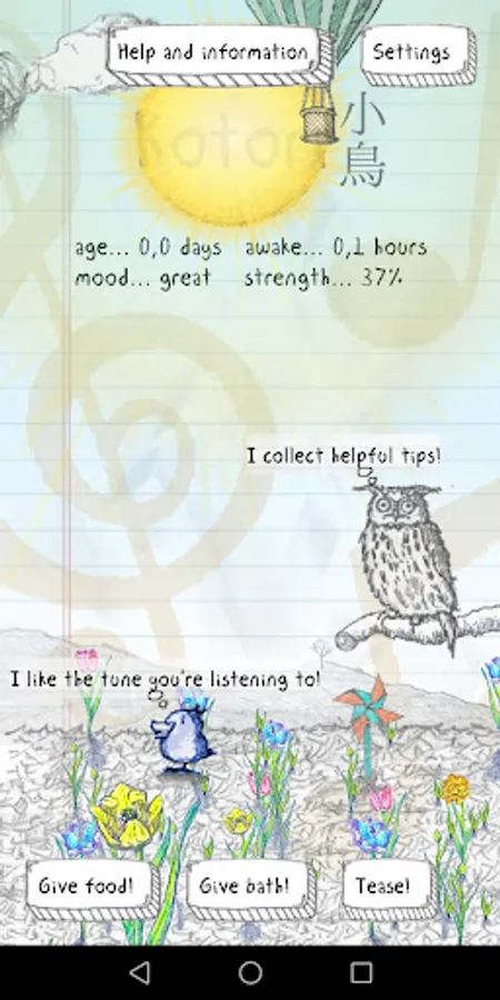 Who and what is Kotori? Kotori is Japanese for "little bird". Kotori is a creature living on your wallpaper; also when your phone is sleeping. Kotori will sleep, eat, talk and age; it is your job to keep Kotori well-fed and healthy. The scenery itself will also change depending on the time of the day. Kotori will also help you; Kotori will let you know if you have a new text message, email, missed call or notice if your device is low on battery and much more.
