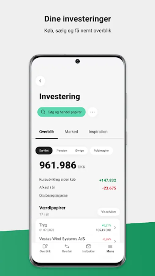 • Investments – buy, sell and get an overview
