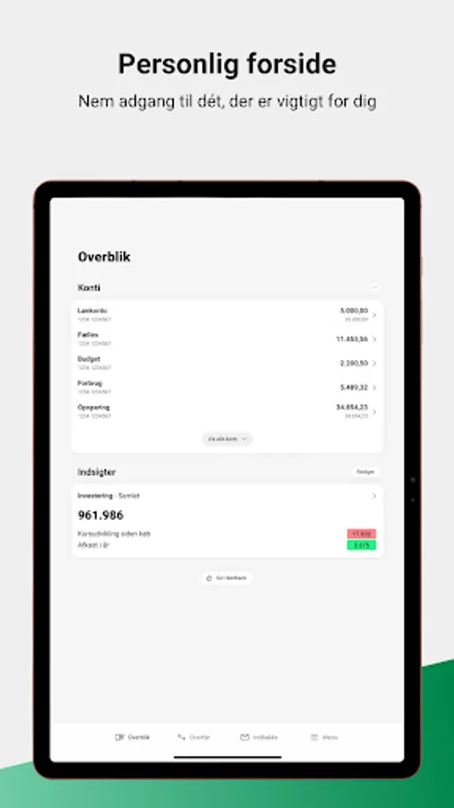 We are constantly working to give you even more options in the mobile bank. They come continuously when you update your app. Later, online banking and mobile banking will be combined, so that you can experience the same personal content and the same functions, regardless of whether you log in via computer, phone or tablet. It must ensure that our digital platform keeps up with our customers' increasing desire to solve everyday banking themselves.
