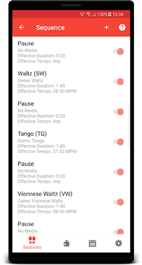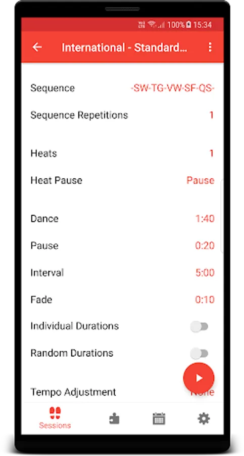 - Specify common durations for the steps in your sequence, or assign individual durations to each dance, pause or interval step (optionally with randomization)