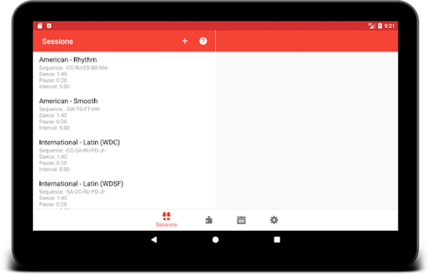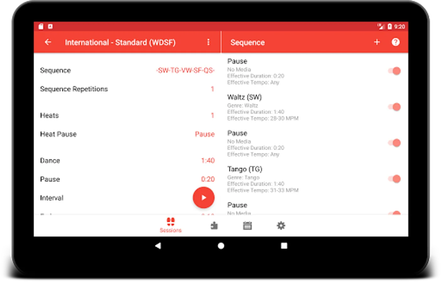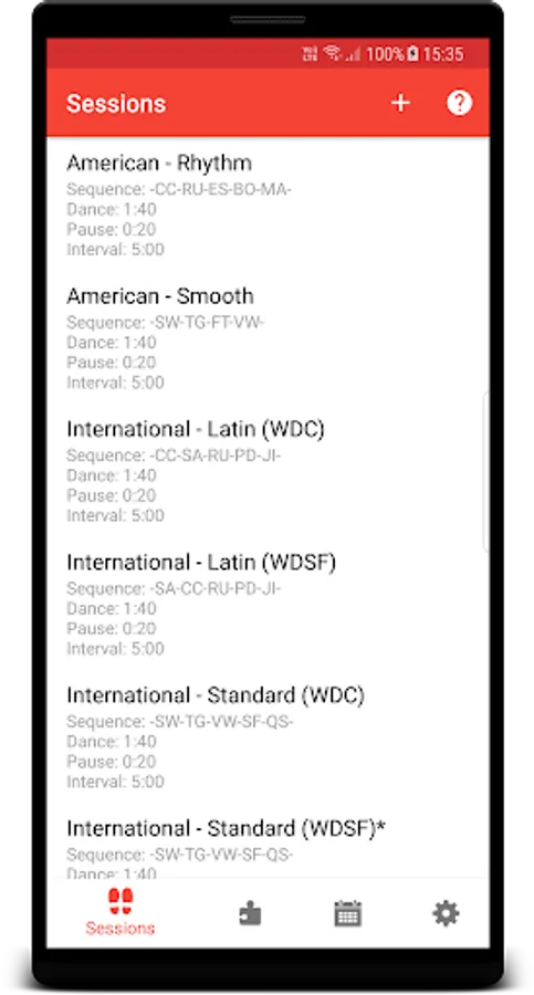 - 6 pre-defined sessions (Standard WDSF/WDC, Latin WDSF/WDC, Smooth and Rhythm)