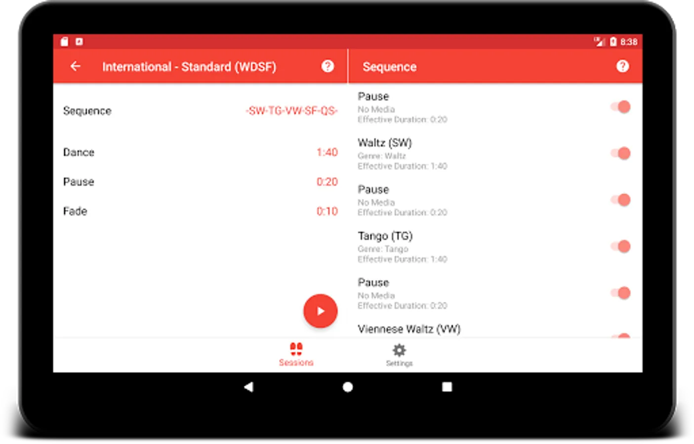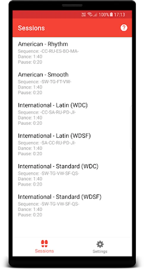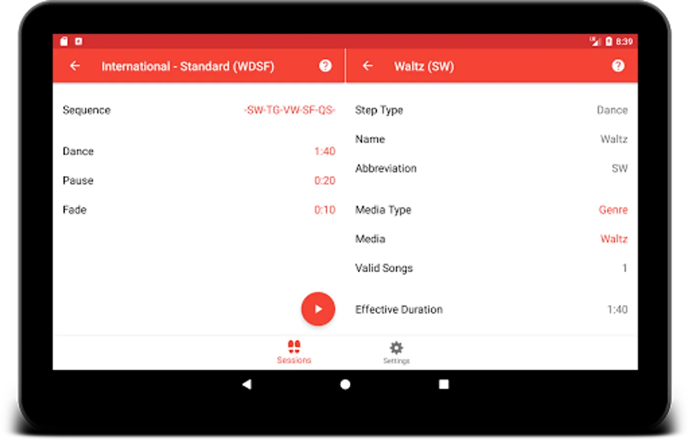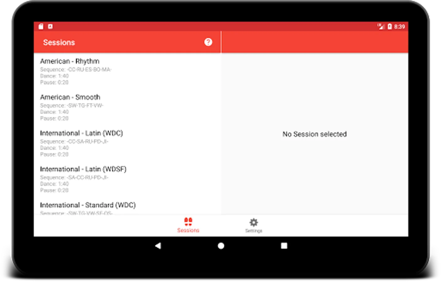 - 6 pre-defined sessions (Standard WDSF/WDC, Latin WDSF/WDC, Smooth and Rhythm)