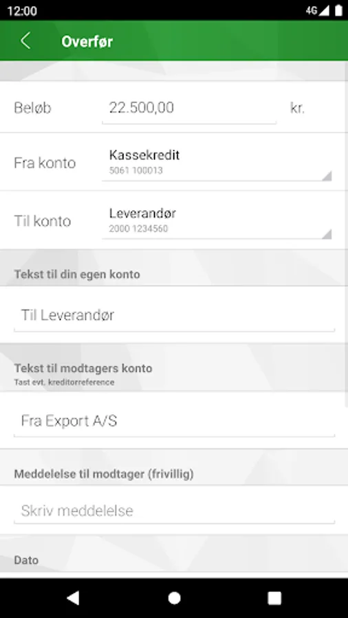 • Create transfers in Danish kroner