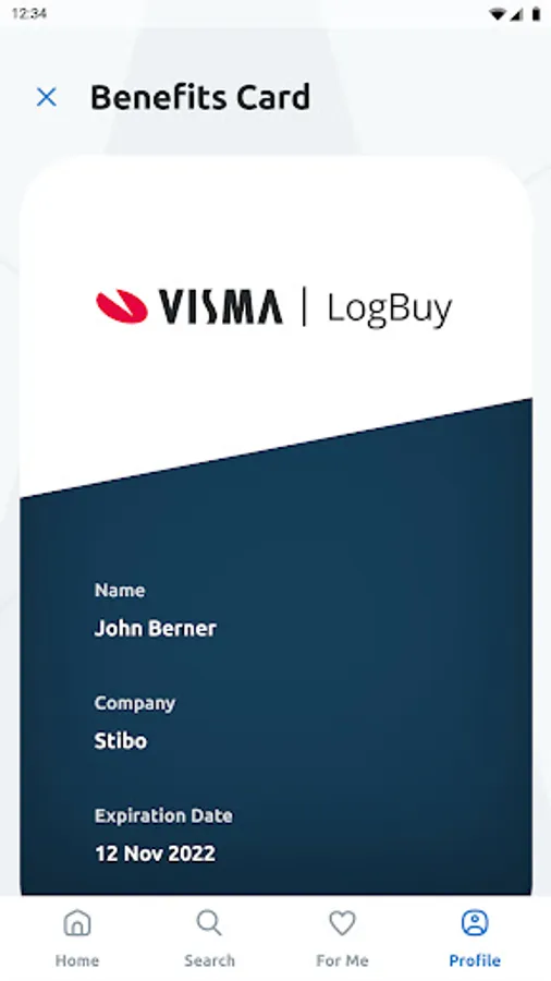 In the Profile menu you have access to your profile, your electronic Benefits Card and your settings.