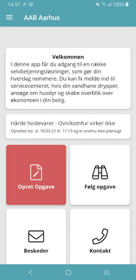 Here, as a resident of AAB Aarhus, you can get access to a number of self-service solutions that can make your everyday life easier. For example, it may be to report to the service center that your faucet is dripping; apply for pets; as well as create you an overview of the finances of your home. Once the task has been created, you can follow the progress of the case, and every time there is news in the case, you will receive a message about it. To get started, simply log in with NemID.