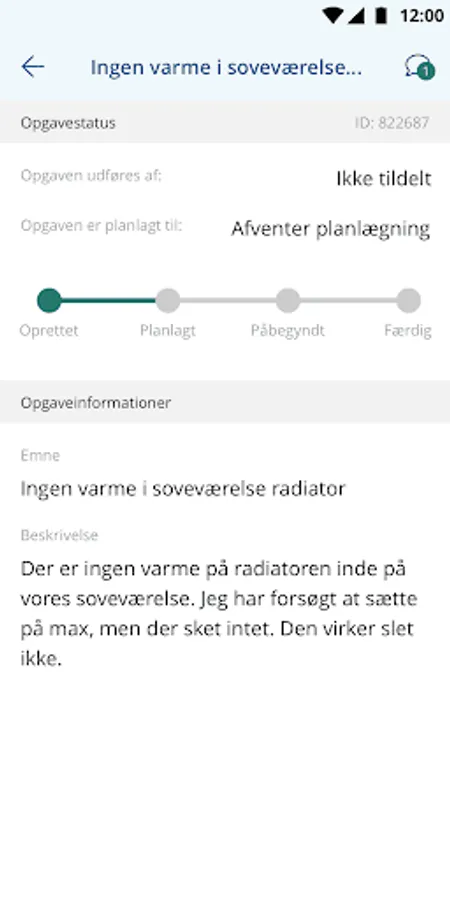 When the assignment has been sent, you can follow the case and every time there is a new case, you will receive a message. You can also write in the case if you have further comments.