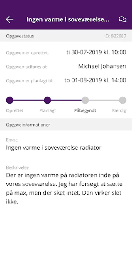You can create a task quite simply from a variety of categories. You can also attach photos of the issue to make the scope or location visible, as a photo is often more descriptive, further you can also post your own comment.