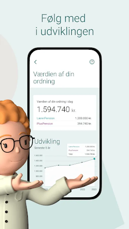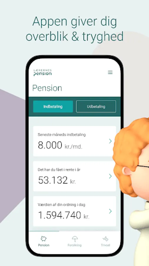 Pension savings are not always easy to deal with in an everyday life that goes with so much else. When you have a scheme in Lærernes Pension, the app makes it easy for you to keep track of what you can expect to be paid out, what you will receive in interest and whether you have saved enough in relation to our recommendation.