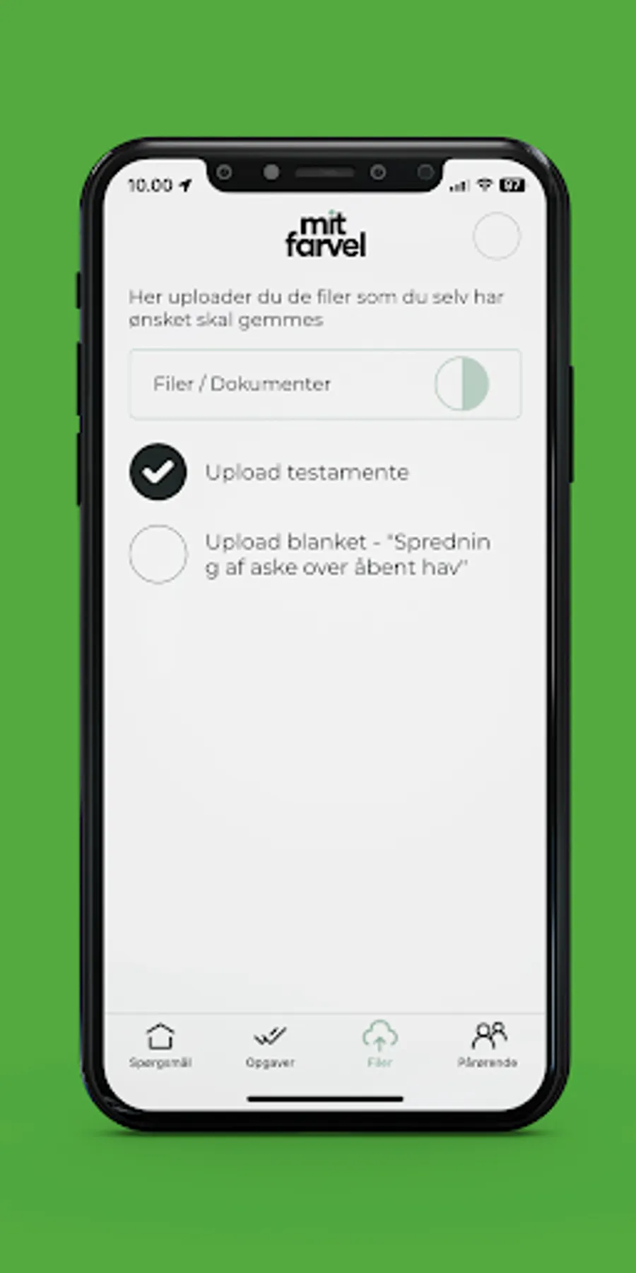 As something quite unique, Mit Farvel can automatically, within 24 hours, notify those with whom you have shared your profile after death has occurred.