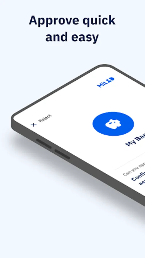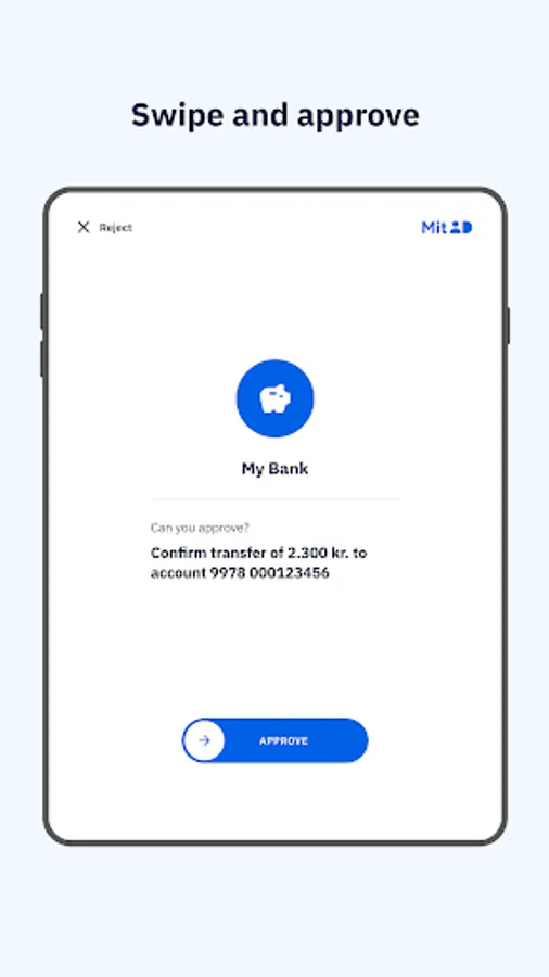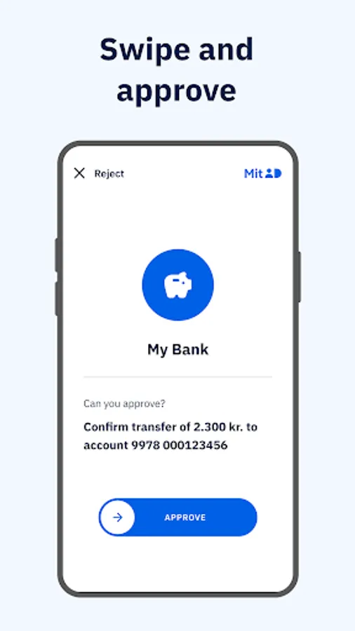 - Always read what you are about to approve with MitID. Press 'Reject' in the top left corner of the app, if you see an action, you don't want to approve, or an action you haven’t initiated.