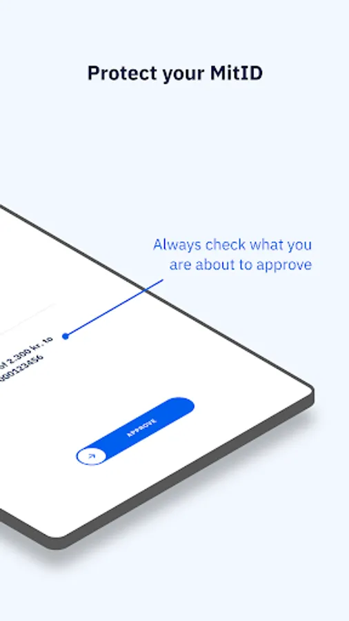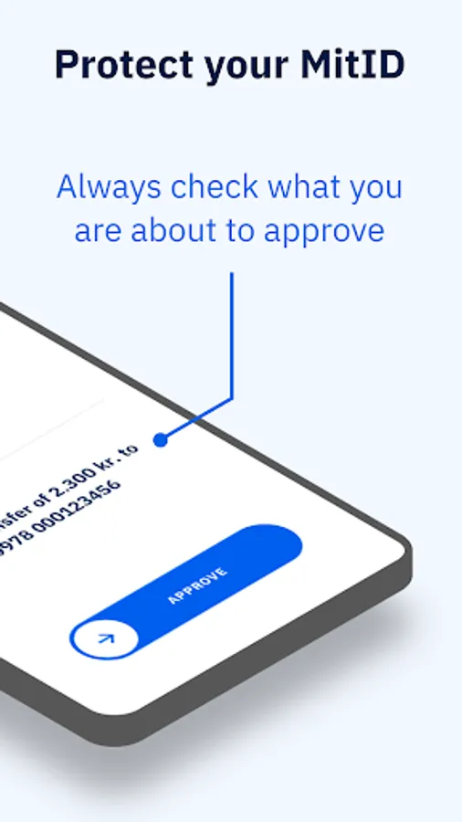 - Never approve anything using MitID based on a call, an e-mail, or a visit from someone pretending to be from your bank, a support organisation or a public authority.