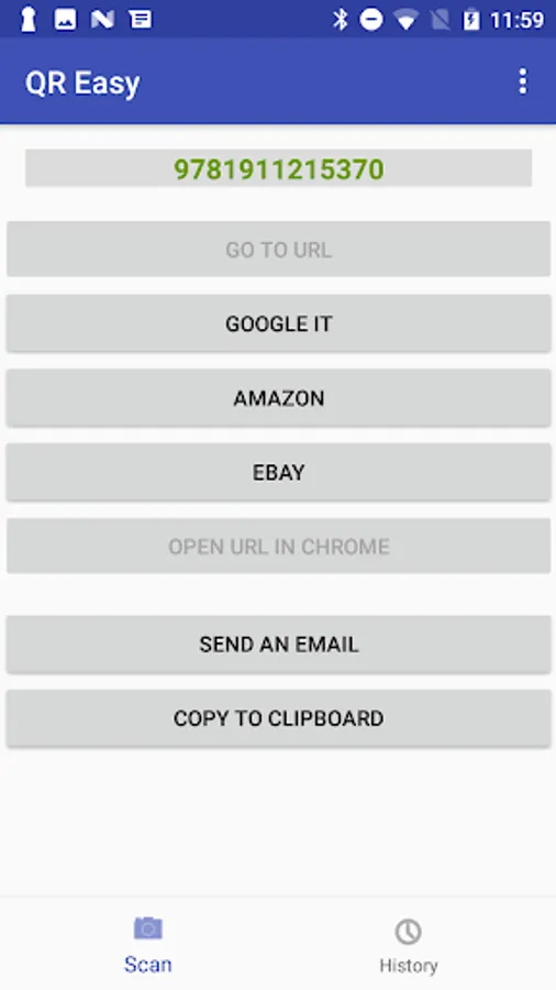 QR Easy makes it very uncomplicated to scan QR and barcodes. After a scan, select to view or search more information on the Internet.