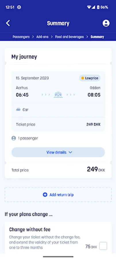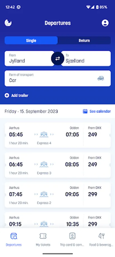 You can still do everything that you’re used to doing in the MOLSLINJEN app. The app’s many features are listed below.