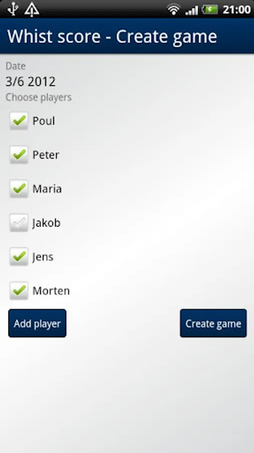 - Connect to you user at http://mholmgaard.dk, meaning that you can access the same playing groups on the phone and the games will be saved on the website. You will then be able to look at statistics for the game at http://mholmgaard.dk at any time.