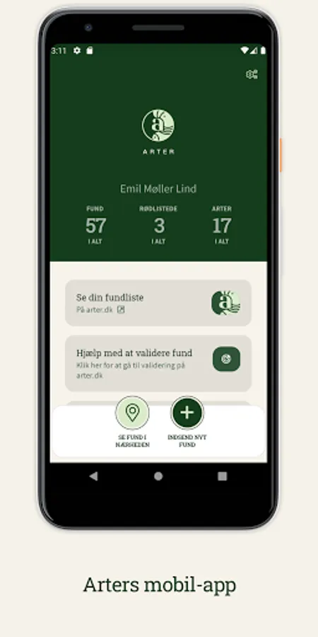 Species consists of the website arter.dk and an underlying database. Via the app, you can register as a user on arter.dk, just as the app contains a link to the overview of your findings on arter.dk.