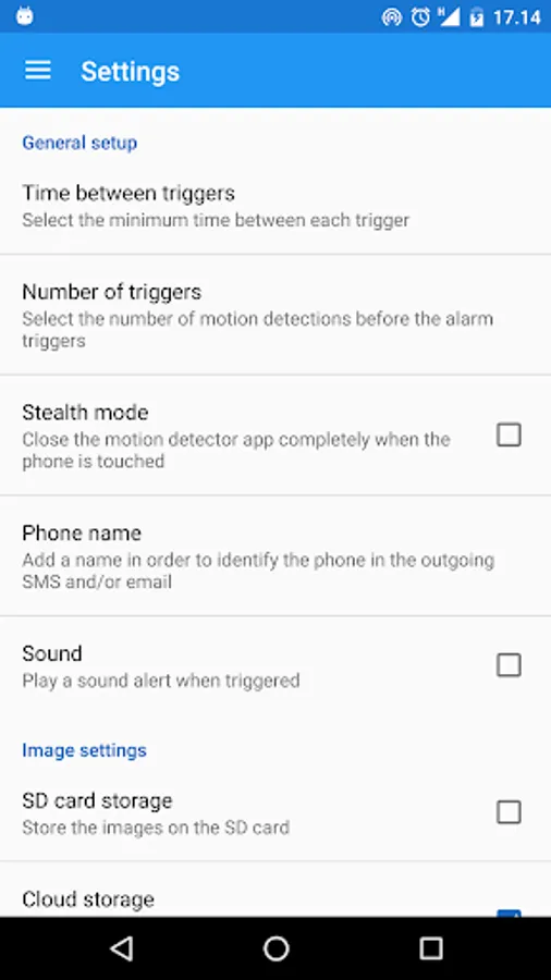 ✓ Store the images on the cloud or locally on the phones SD-card