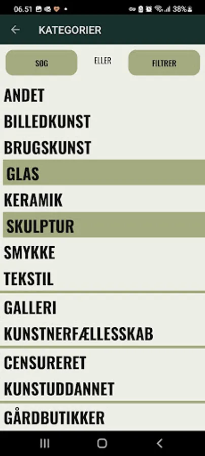 Here in the app you can sort between the artists and the many different types of art that can be experienced during Art Days in Odsherred. For example, you can choose to view only art graduates, potters, or artist communities.