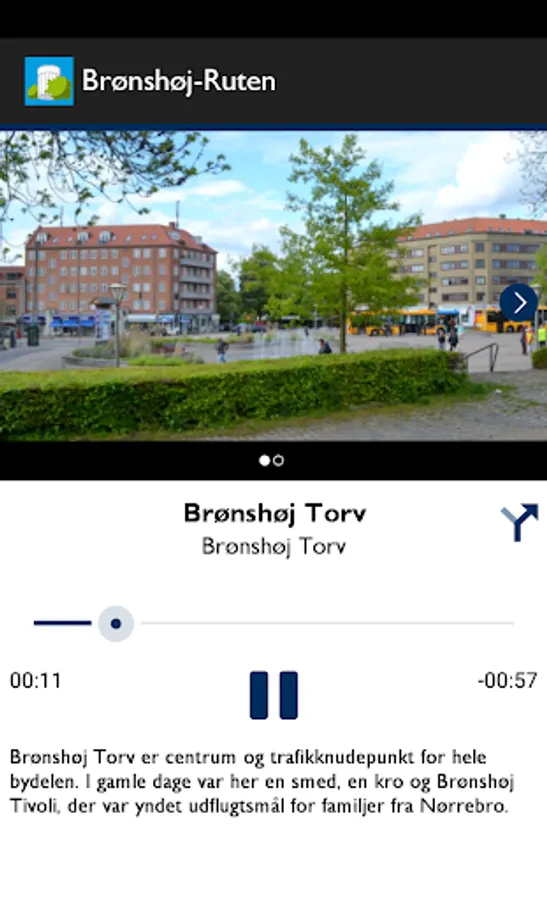 The app contains a number of guided city lydguides primarily for use in district of Brønshøj-Husum.