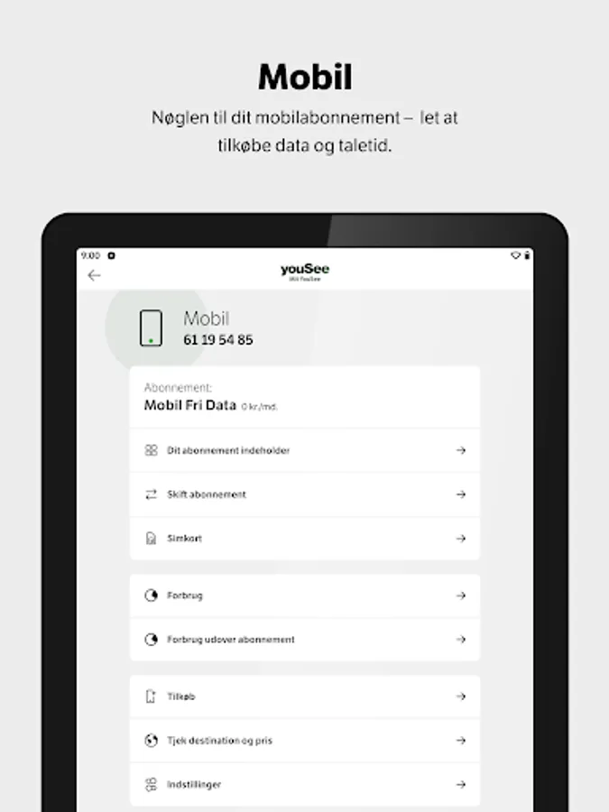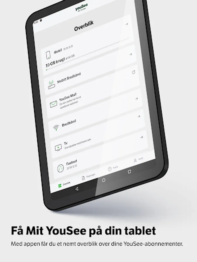 Get an overview of all your products at YouSee, as well as a lot of options for settings on your products.