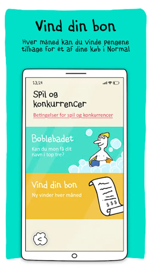 NORMAL's app is "something for something". We get to know you a little better - in return you get fun, games, competitions, news and chances to win good prizes - eg your money back when you shop in NORMAL.