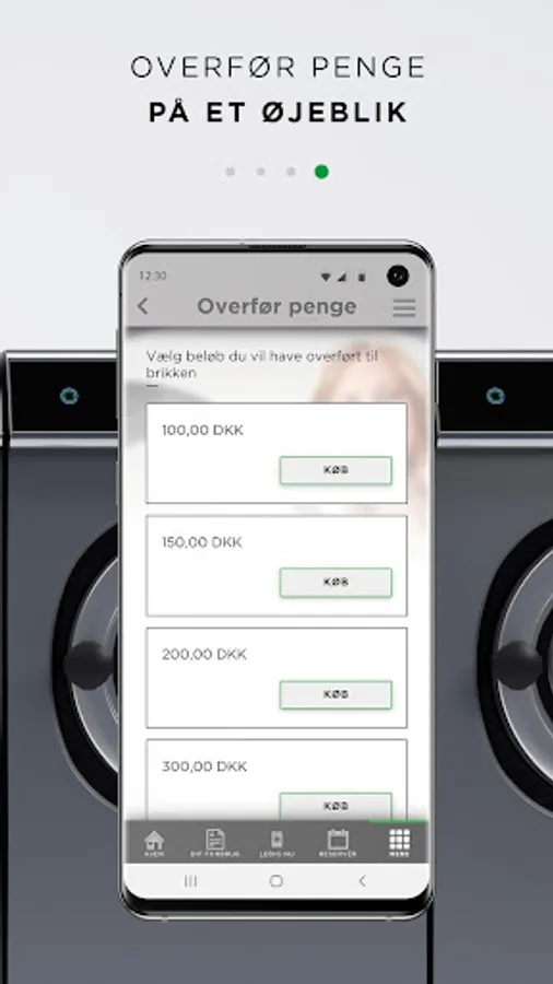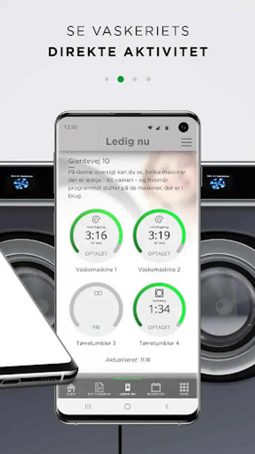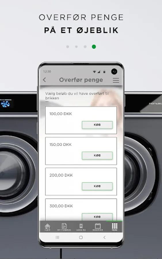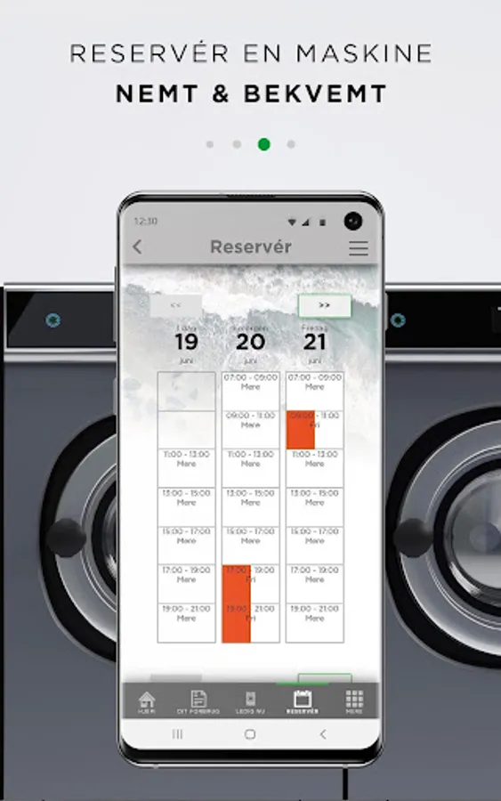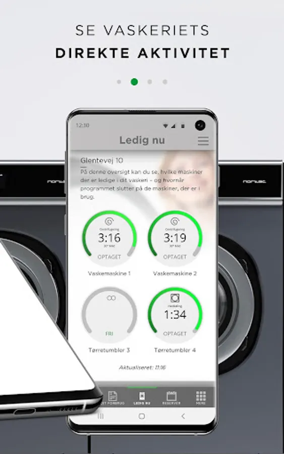 E-vaskeri provides a wide range of smart functions that ease daily routines for users of Nortec® laundries. Depending on the specific laundry you use, you can access functions such as “Available”, “Book” and “Spent”.*