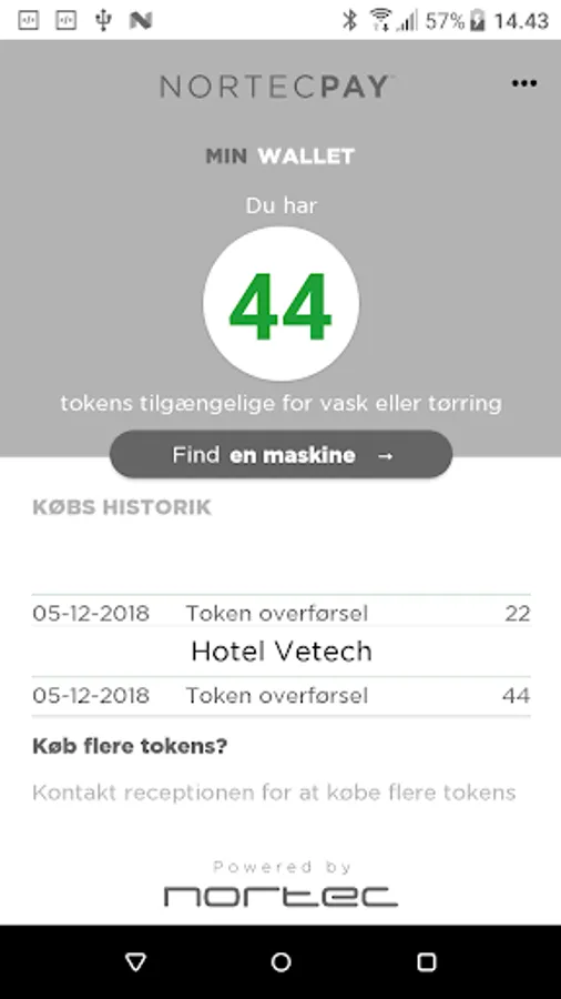 NortecPay lets you use your smartphone to pay for a unit (such as a washing machine) with an integrated NDU (Nortec Direct Unit). The app lets you communicate directly with the unit, and makes it easy to make the payment using the most popular payment apps: MobilePay, PayPal, Apple Pay and Google Pay. In Guest Mode (used at hotels and hostels), it is also possible to pay with the app’s own tokens.