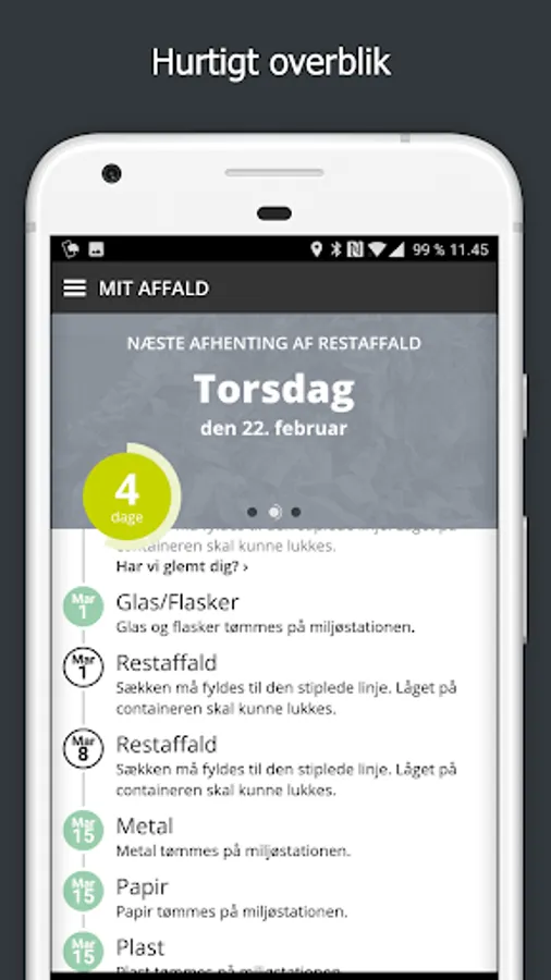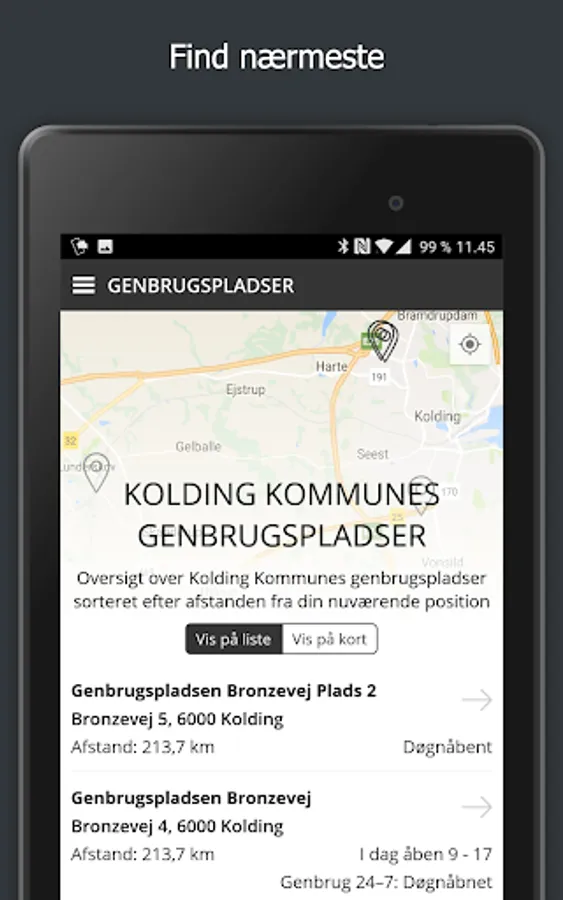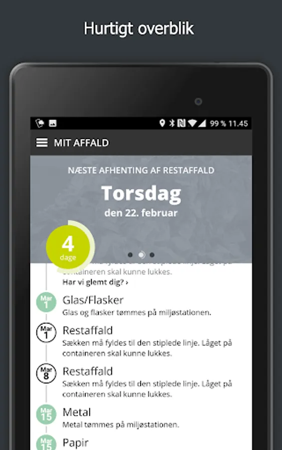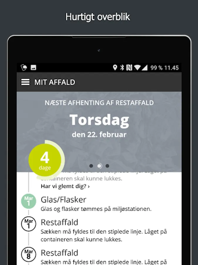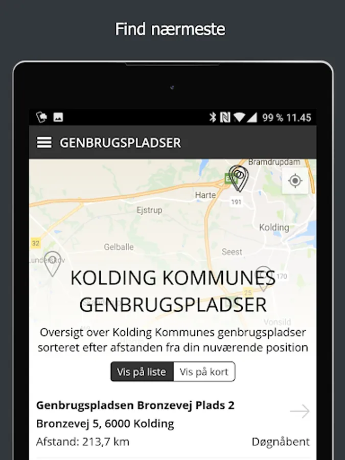 The purpose of the app which is provided by Kolding Municipality is to provide citizens with a tool that will improve their waste management and recycling.