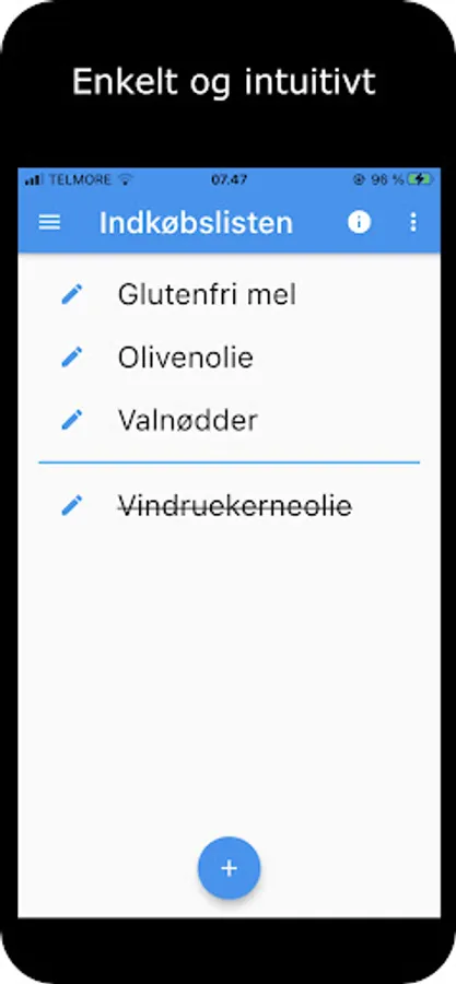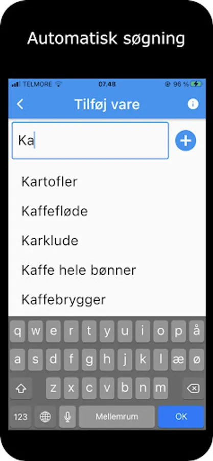 Simple and intuitive shopping list, with efficient search function that quickly suggests items where previously purchased comes first.