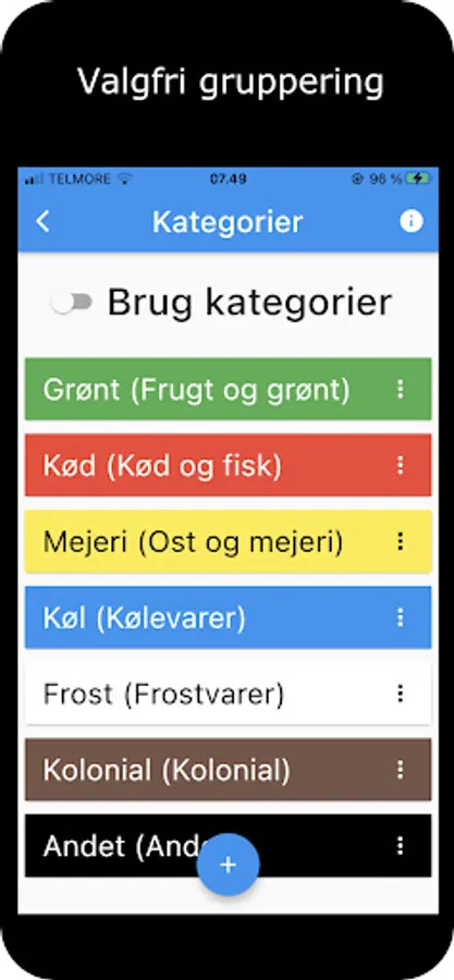 You can choose to divide the items on the list into self-selected categories, and copy items from other lists.
