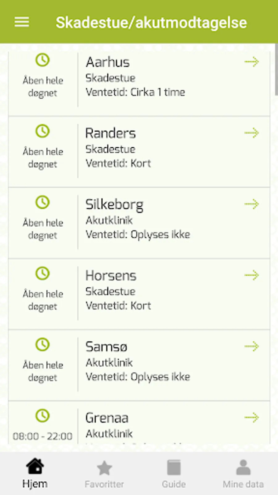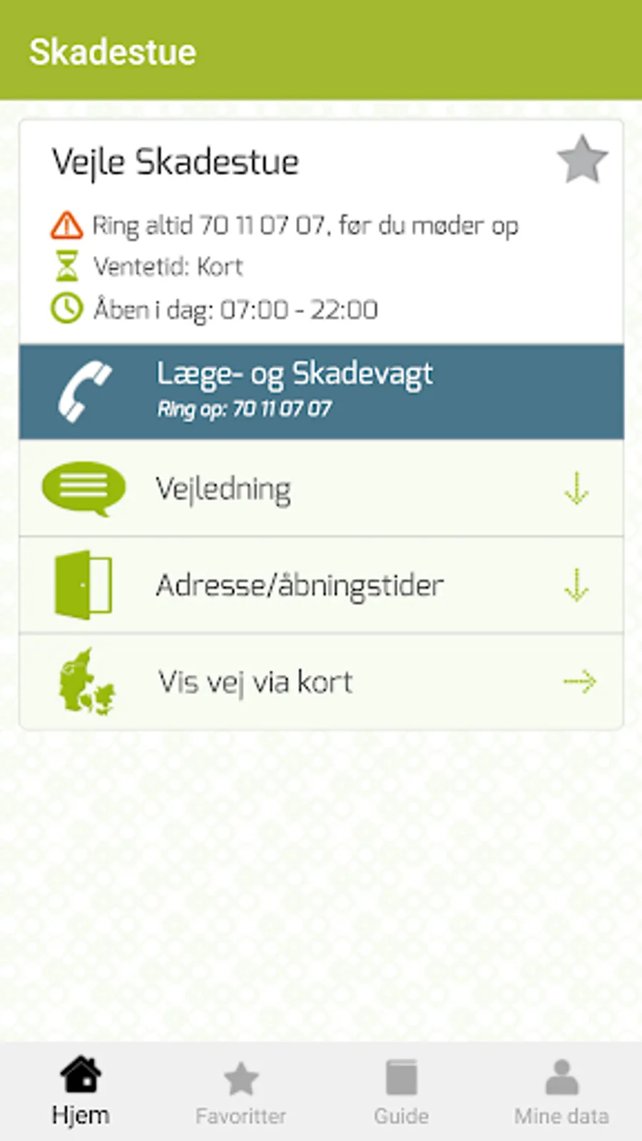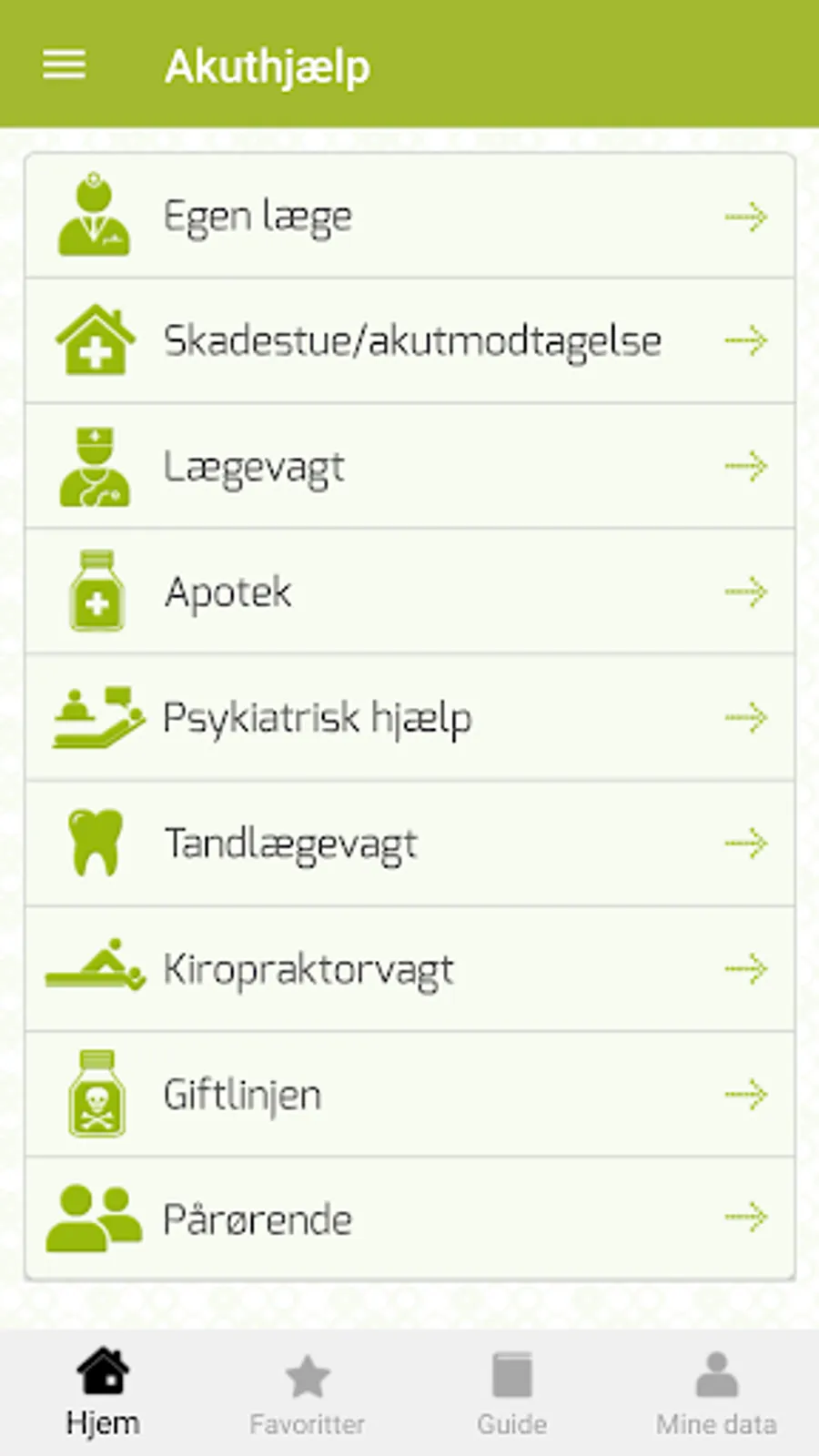 With the national emergency care app, you can quickly get an overview of all emergency rooms, emergency rooms, emergency clinics, etc. in Denmark. You can call the emergency room directly and find opening hours at your nearest pharmacy. If you need a dentist, chiropractor or psychiatric help in an emergency, you can also look it up in the app. The app covers the whole of Denmark.
