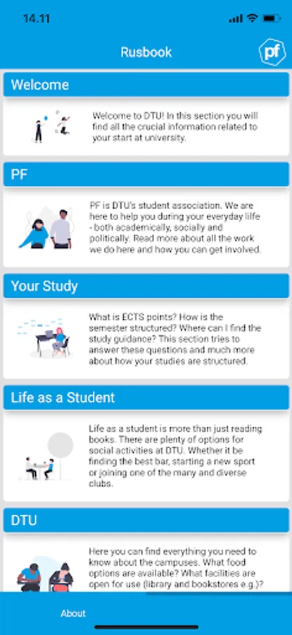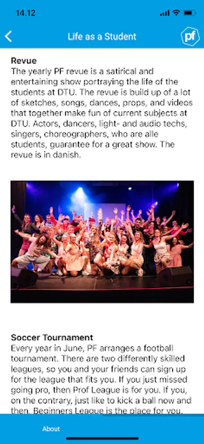 Polyteknisk Forening, or PF for short, is the student association at DTU. In this app we have made it a bit easier for you as a DTU student to be updated on the latest events, opening hours, and other great information from PF.