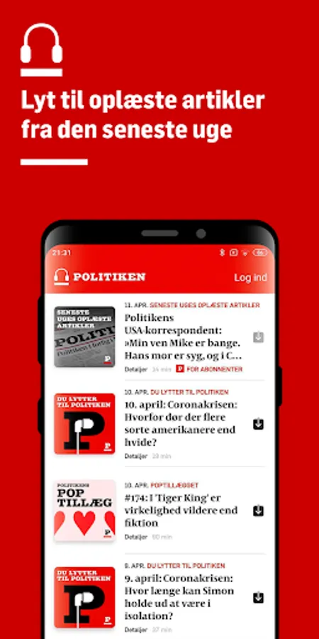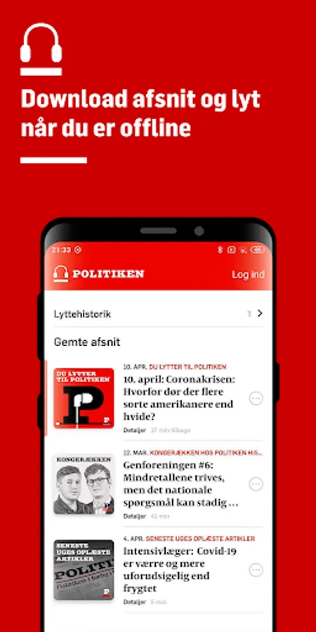 - Quick overview of all the latest episodes from our podcasts, including our award-winning ‘Du lytter til Politiken’.