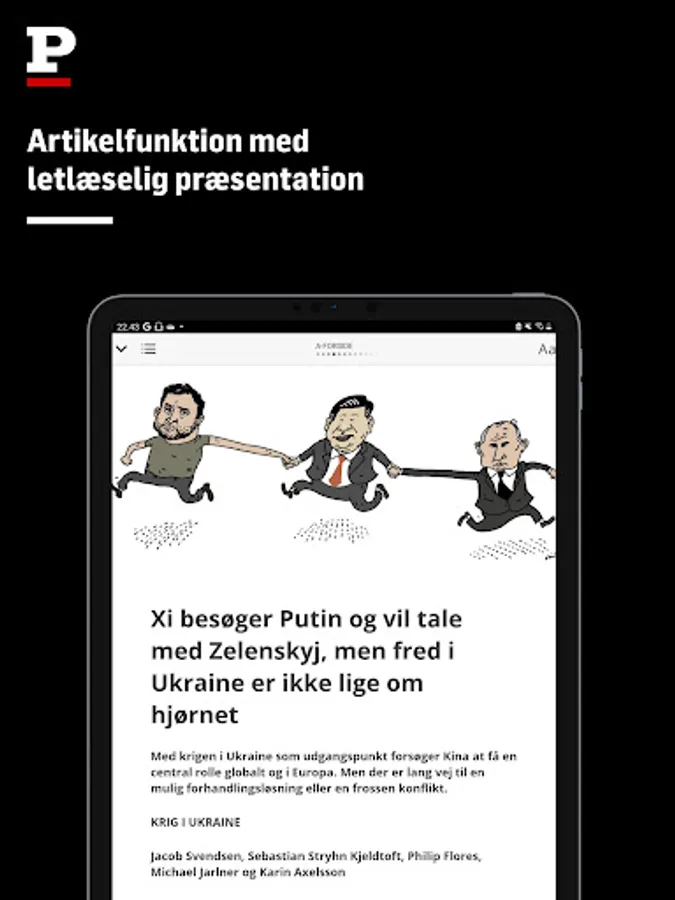 Politiken's e-newspaper is Politiken as you know it, a complete copy of today's paper newspaper, but with several advantages:
