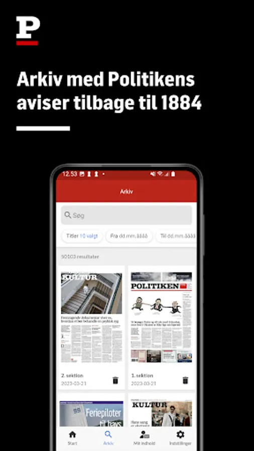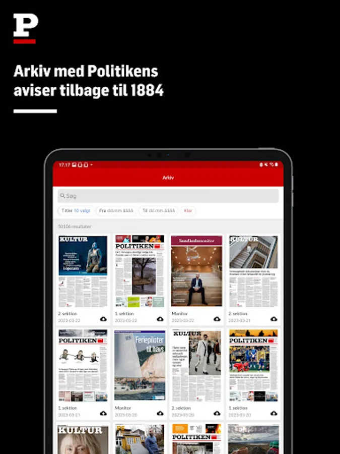 • Archive function: Easily navigate around the archive and read all editions of Politiken all the way back to the first edition of the printed newspaper from 1884.