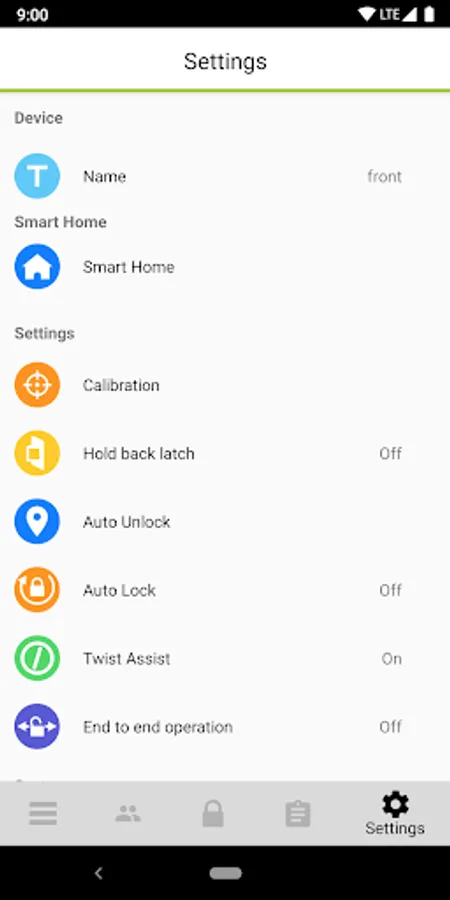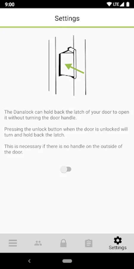 • Settings page to set up your Danalock