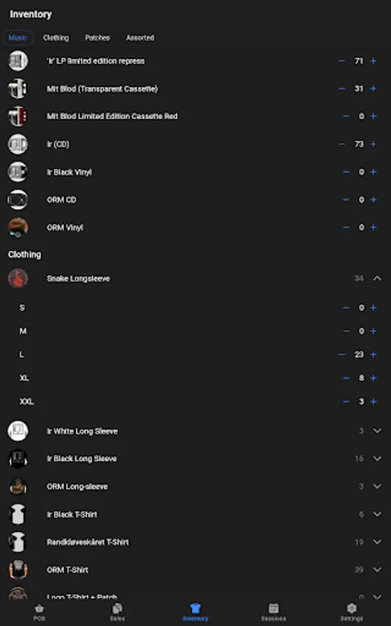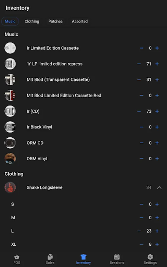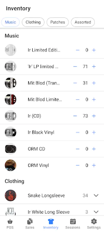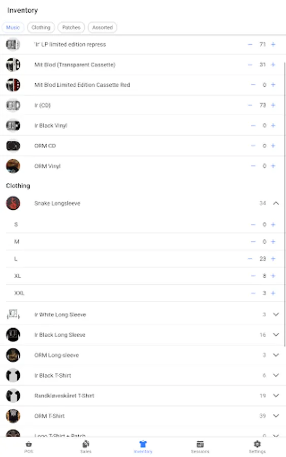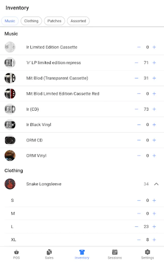 Instead of tracking sales by hand at each show, use Possum to sell your Bandcamp items physically, automatically tracking items sold, revenue, and synchronizing stock and inventory to your online Bandcamp page.