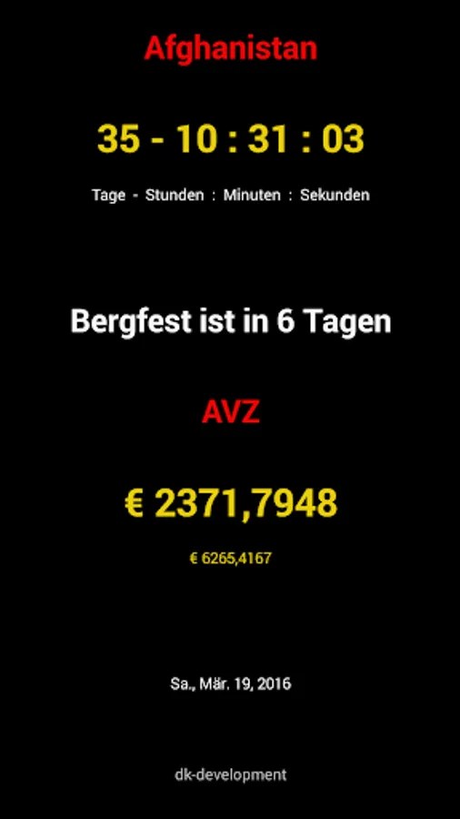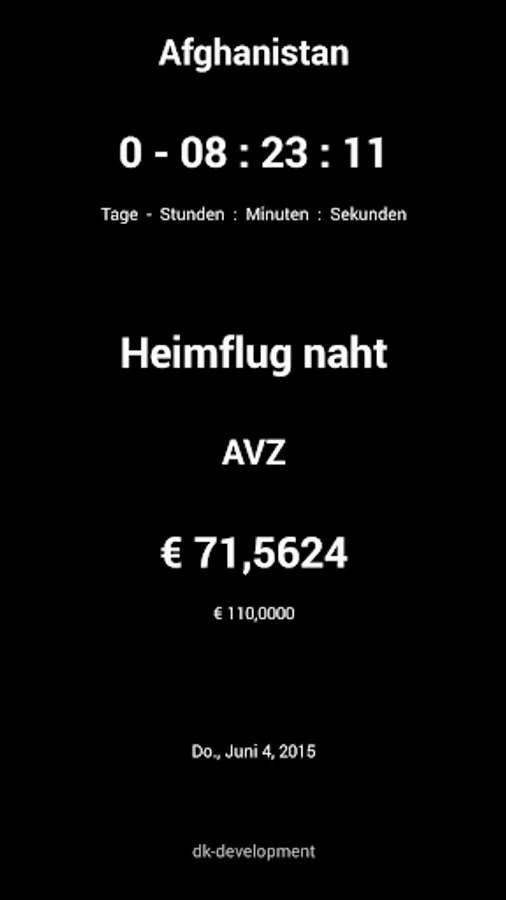 With the title, you determine the meaning of the countdown, that if you want to have the country of use, days until Christmas, service end or some other event appears as enter "flight home is in ...", then it appears on the screen and below are the dates until then ...