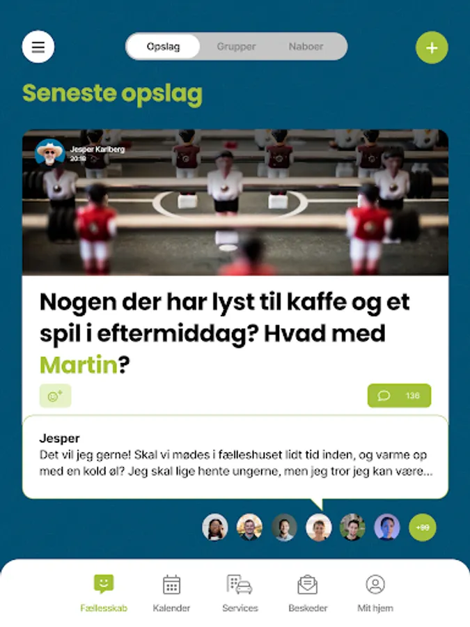 The plus houses are co-living in 2022. We want to create a housing community where the residents experience an increased quality of life in an active everyday life. A home that one cannot see oneself moving from again. As a resident of Plushusene, you use the app in your everyday life. This is where you sign up for events, e.g. communal dining or yoga. You can book resources as our guest apartments or tools. This is also where you can request and subscribe to services such as cleaning, window cleaning or gardening.