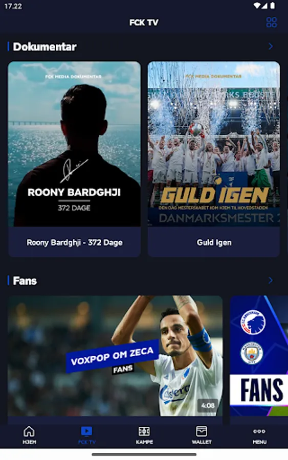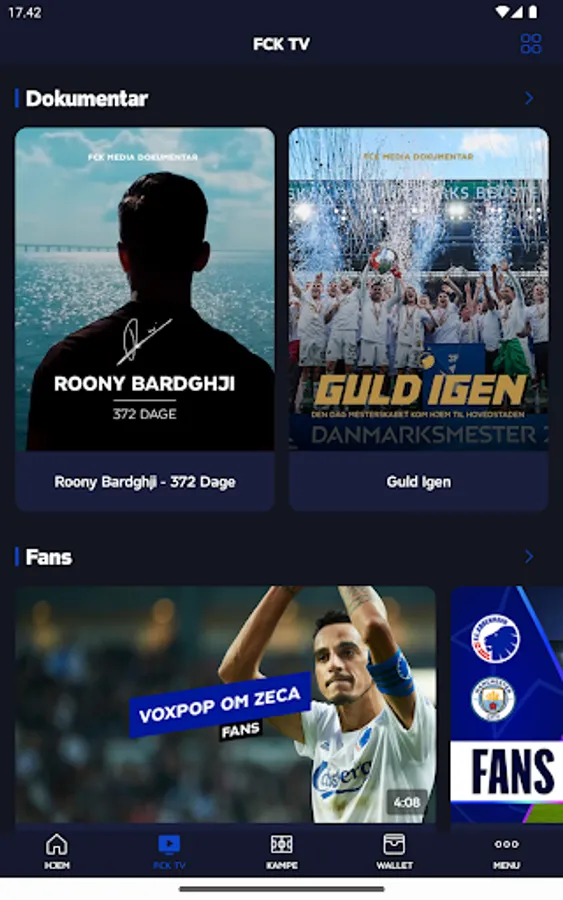 Get even more out of F.C. The Copenhagen app with an FCK+ subscription (included in season ticket, card subscription and ticket subscription), where you get exclusive access to several videos, live streams of selected training matches and U19 matches, documentaries, the Clubhouse, etc.