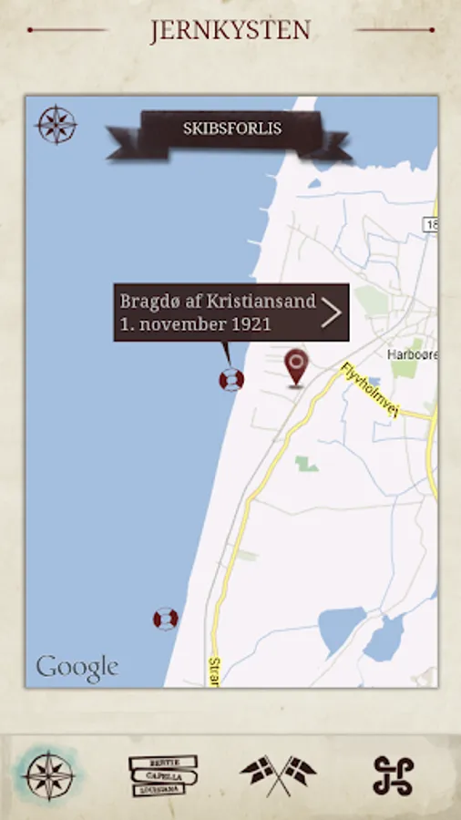 Experience the west coast of Jutland through twelve shipwrecks that have taken place between the cities of Thyborøn and Thorsminde. The app guides you to twelve dramatic strandings and tells the stories about what happened. Read about why the Danish was established and get to know the people who helped the sailors in distress.